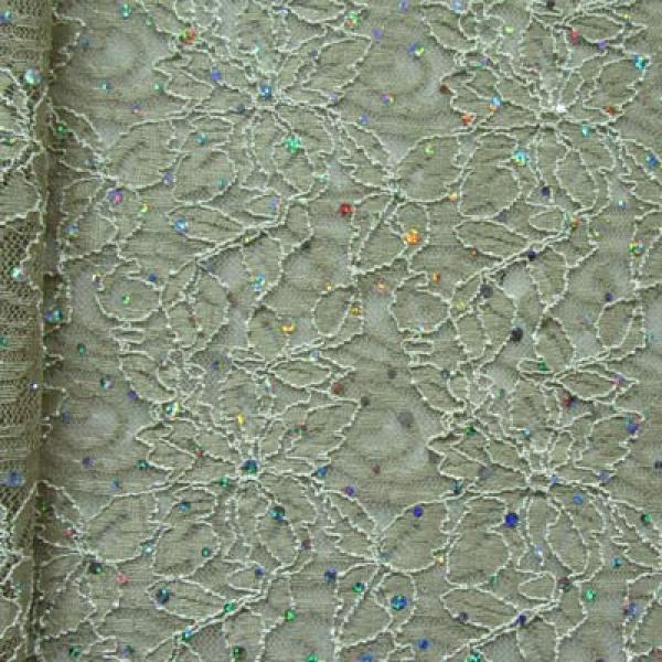 This is a Holographic Fancy Floral Lace Metallic Foil, 2 Way Stretch, Mocha