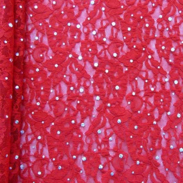 This is a Holographic Fancy Floral Lace Metallic Foil, 2 Way Stretch, Red