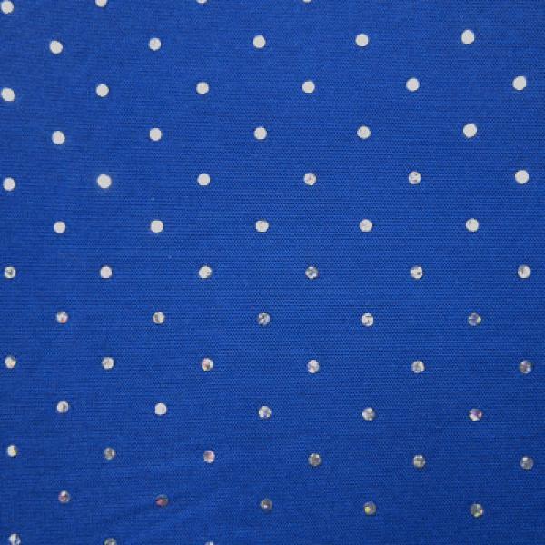 This is a Medium-Weight Holographic Sequins on Mesh on Stretch Mesh Fabric, With a Stretch, Silver/Royal Colored