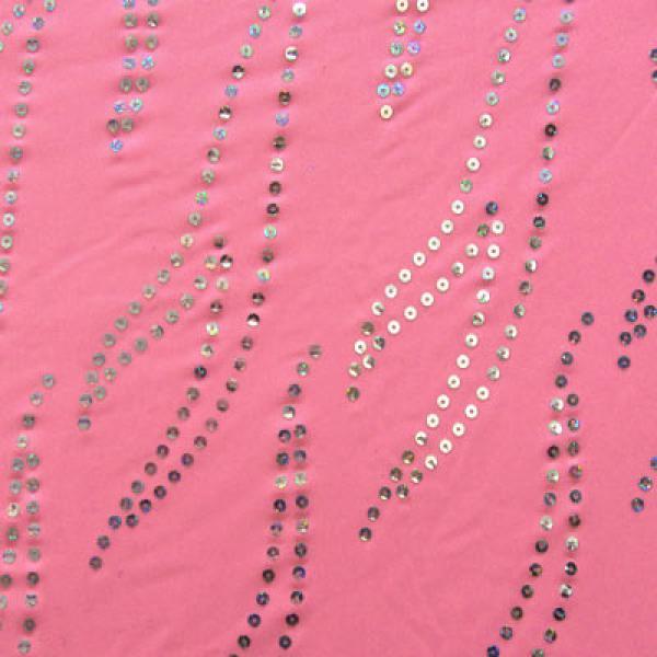 This is a Medium-Weight Holographic Sequins on Stretch Mesh Fabric, With a 4 Way Stretch, Pink Colored