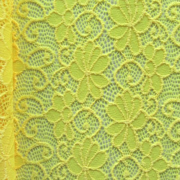 This is a Light-Weight Fancy Floral Lace on Nylon Spandex Fabric, With a 4 Way Stretch, Yellow Colored