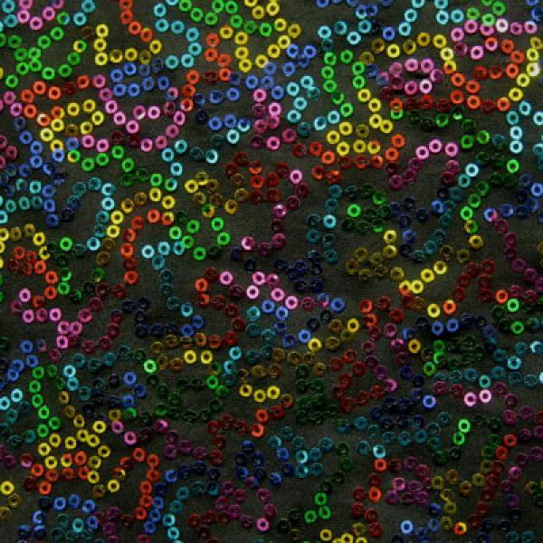 This is a Medium-Weight 2mm Sequins on Polyester Spandex Fabric, With a 2 Way Stretch, Black Colored