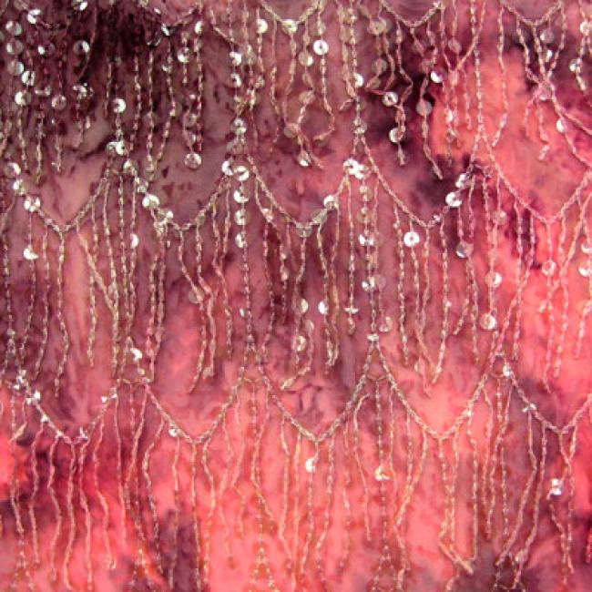 This is a Medium-Weight 6Mm Flapper Sequin Fabric, With a Stretch, Pink/Burgundy Colored