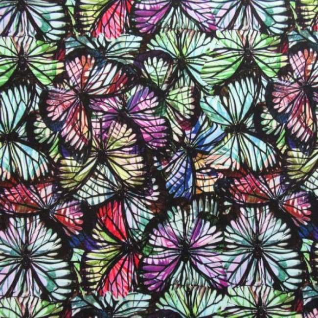 This is a Light-Weight Butterflies Print on Polyester Spandex Fabric, With a 4 Way Stretch, Multi-Colored Colored