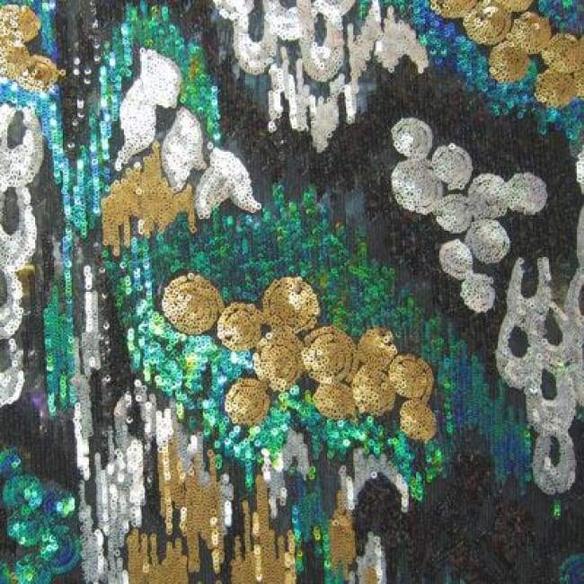 Color Sequins On Mesh On Polyester Mesh, 2 Way Stretch, Multi-Colored