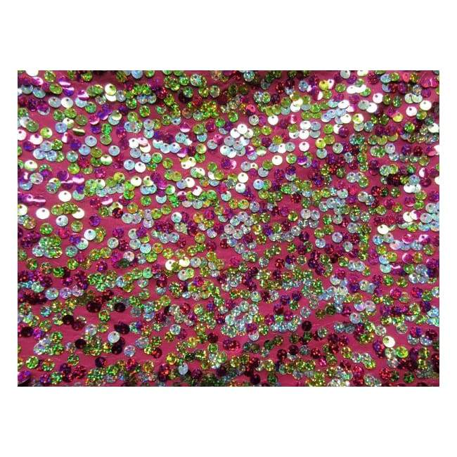 This is a Medium-Weight Dangling 5mm Sequins on Polyester Spandex Fabric, With a Non-Stretch, Multi-Colored Colored
