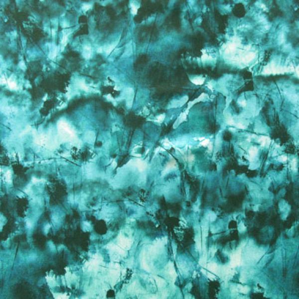 Digital Watercolor Print On Polyester Spandex, 4 Way Stretch, Teal Blue