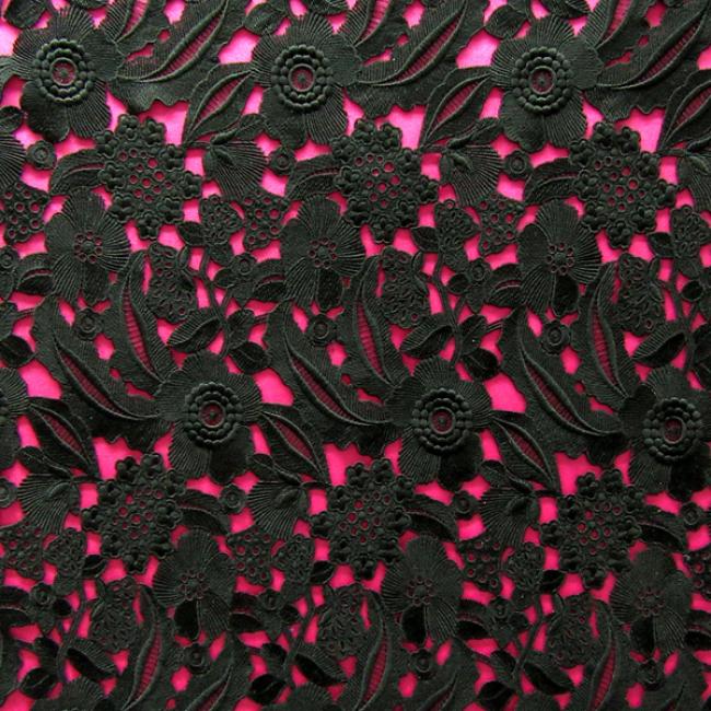 This is a Light-Weight Embroidery Lace Fabric, With a Non-Stretch, Black Colored