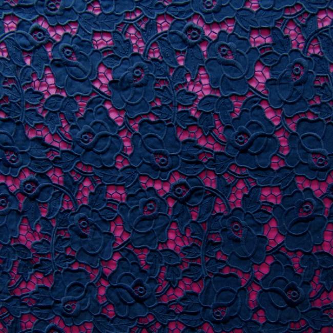 Embroidery Lace Fabric, Non-Stretch, Navy