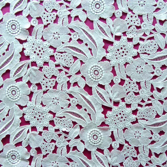 This is a Light-Weight Embroidery Lace Fabric, With a Non-Stretch, White Colored