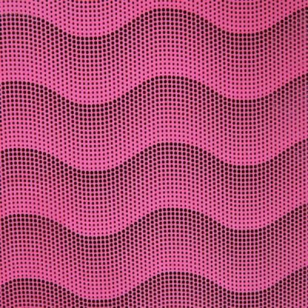 This is a Medium-Weight Endless Waves Foil on Polyester Spandex Fabric, With a 4 Way Stretch, Black/Cerise Colored