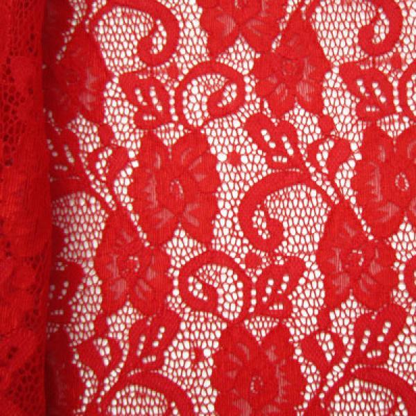 This is a Light-Weight Fancy Floral Lace on Nylon Spandex Fabric, With a 2 Way Stretch, Red Colored
