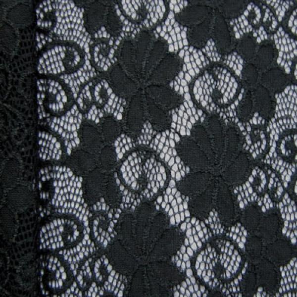 This is a Light-Weight Fancy Floral Lace on Nylon Spandex Fabric, With a 4 Way Stretch, Black Colored