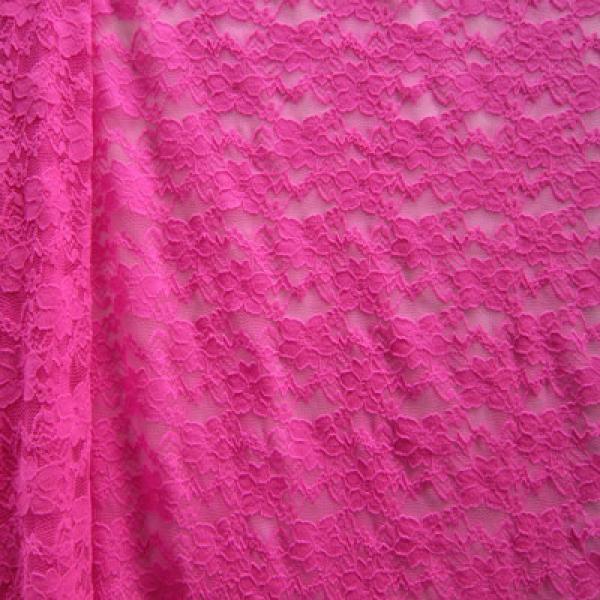 This is a Light-Weight Fancy Floral Lace on Nylon Spandex Fabric, With a 4 Way Stretch, Hot pink Colored