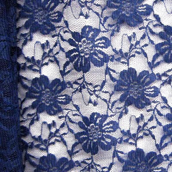 This is a Light-Weight Fancy Floral Lace on Nylon Spandex Fabric, With a 4 Way Stretch, Navy Colored
