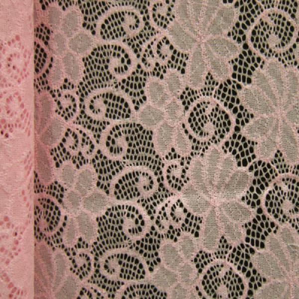 This is a Light-Weight Fancy Floral Lace on Nylon Spandex Fabric, With a 4 Way Stretch, Pink Colored
