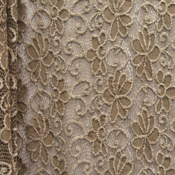 Fancy Floral Lace On Nylon Spandex, 4 Way Stretch, Sable