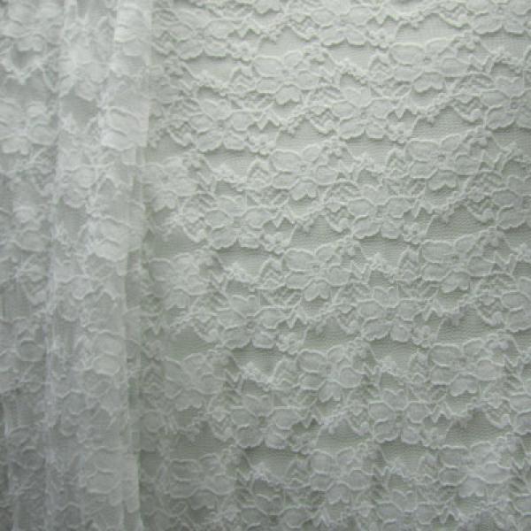 This is a Light-Weight Fancy Floral Lace on Nylon Spandex Fabric, With a 4 Way Stretch, White Colored