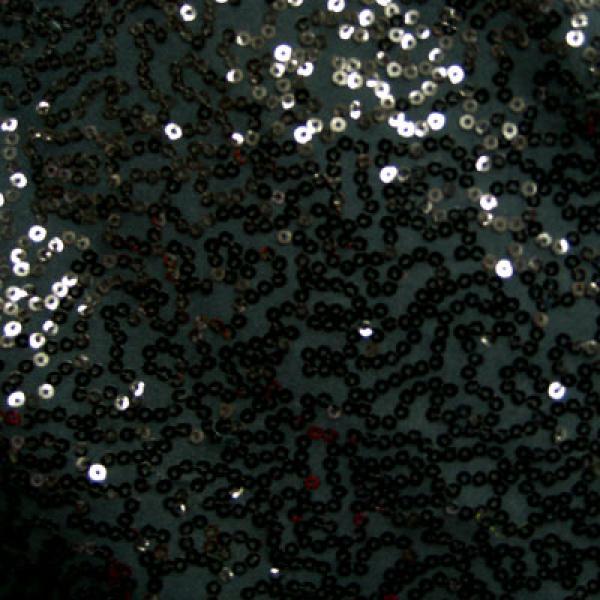 This is a Medium-Weight Fancy Squiggle 2mm Sequins on Polyester Spandex Fabric, With a 2 Way Stretch, Black Colored
