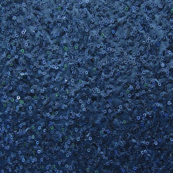This is a Medium-Weight Fancy Squiggle 2mm Sequins on Polyester Spandex Fabric, With a 2 Way Stretch, Navy Colored