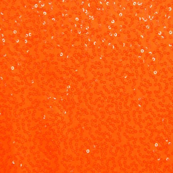 This is a Medium-Weight Fancy Squiggle 2mm Sequins on Polyester Spandex Fabric, With a 2 Way Stretch, Neon Orange Colored