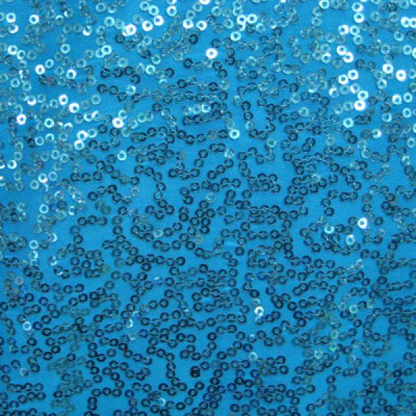 This is a Medium-Weight Fancy Squiggle 2mm Sequins on Polyester Spandex Fabric, With a 2 Way Stretch, Turquoise Colored