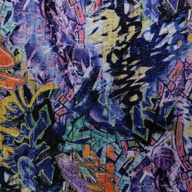 This is a Medium-Weight Graffiti Print 2mm Sequins on Polyester Mesh Fabric, With a Non-Stretch, Multi-Colored Colored