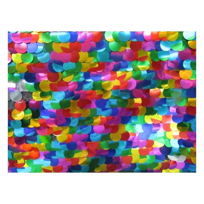 This is a Medium-Weight Holographic 10mm Sequins on Polyester Mesh Fabric, With a 2 Way Stretch, Multi-Colored Colored