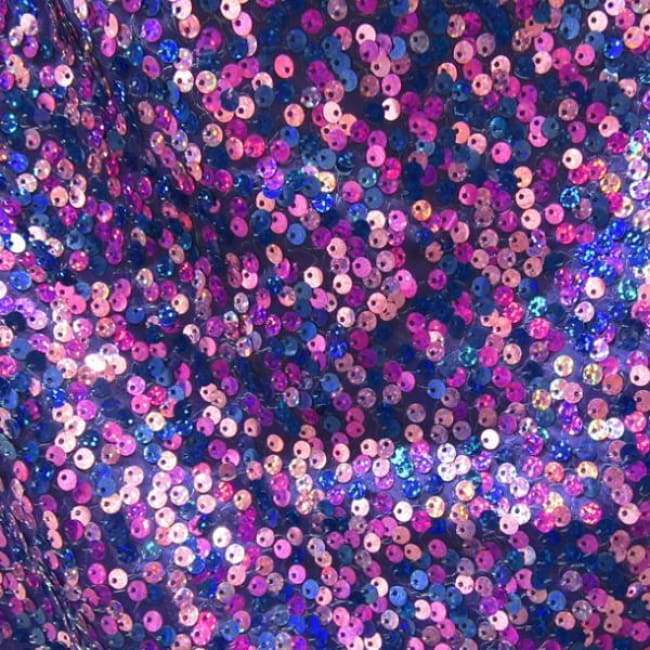 This is a Medium-Weight Holographic 4mm Sequins on Polyester Spandex Fabric, With a 2 Way Stretch, Purple Colored