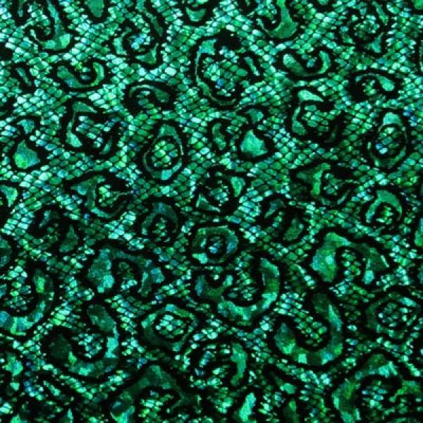 Holographic Animal Print & Scales Metallic Foil On Nylon Spandex, 4 Way Stretch, Kelly/Black