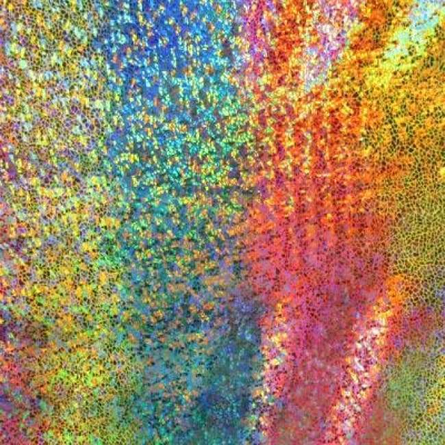 This is a Medium-Weight Holographic Avatar Metallic Foil on Nylon Spandex Fabric, With a 4 Way Stretch, Multi-Colored Colored