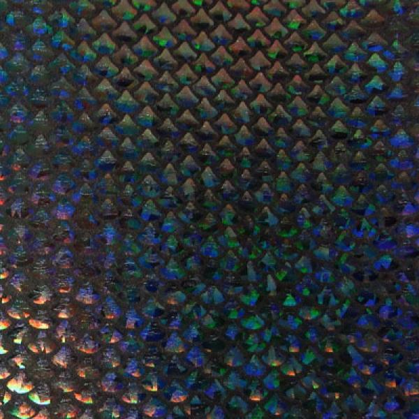 This is a Medium-Weight Holographic Mermaid Foil on Nylon Spandex Fabric, With a 4 Way Stretch, Black Colored