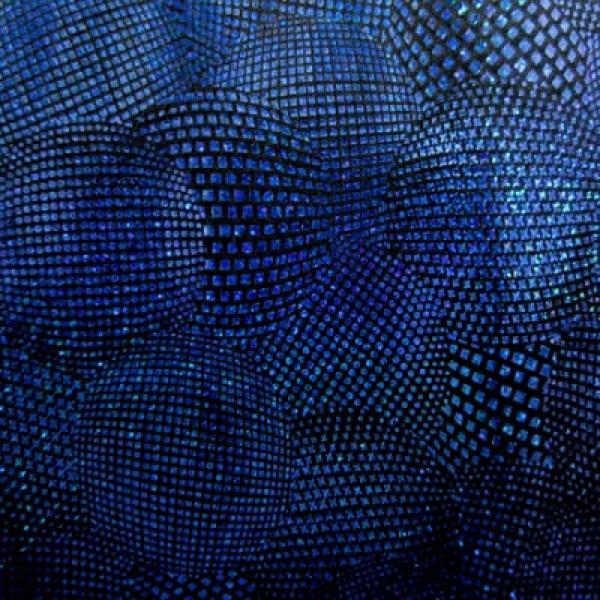 This is a Medium-Weight Holographic Metallic Foil on Nylon Spandex Fabric, With a 2 Way Stretch, Royal/Black Colored