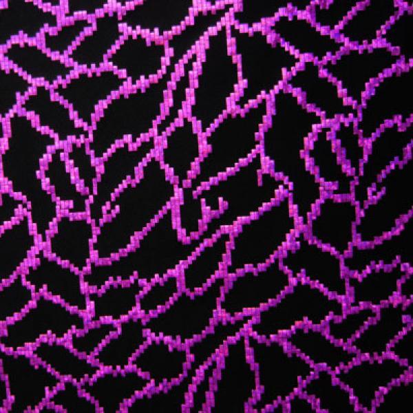 This is a Medium-Weight Holographic Metallic Foil on Nylon Spandex Fabric, With a 4 Way Stretch, Fuchsia/Black Colored