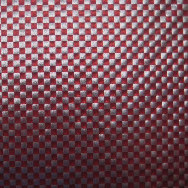 This is a Medium-Weight Holographic Metallic Foil on Nylon Spandex Fabric, With a 4 Way Stretch, Silver/Red Colored