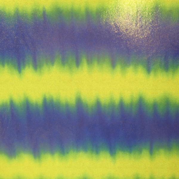 Holographic Metallic Foil On Nylon Spandex, Stretch, Blue/Yellow/Gold