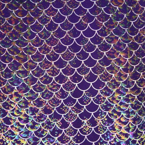 This is a Medium-Weight Holographic Metallic Foil on Nylon Spandex Fabric, With a Stretch, Purple Colored