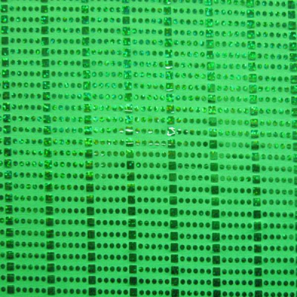 This is a Medium-Weight Holographic Metallic Foil on Polyester Spandex Fabric, With a 2 Way Stretch, Green Colored