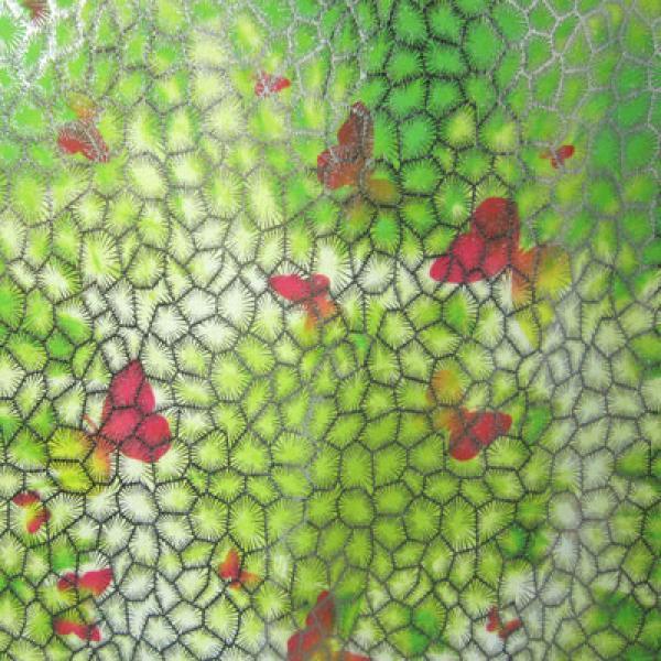 This is a Medium-Weight Holographic Metallic Foil on Polyester Spandex Fabric, With a Stretch, Silver Colored