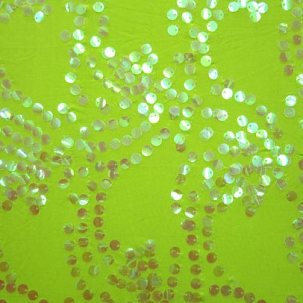 This is a Medium-Weight Holographic Sequins on Polyester Spandex Fabric, With a Stretch, Apple Green Colored