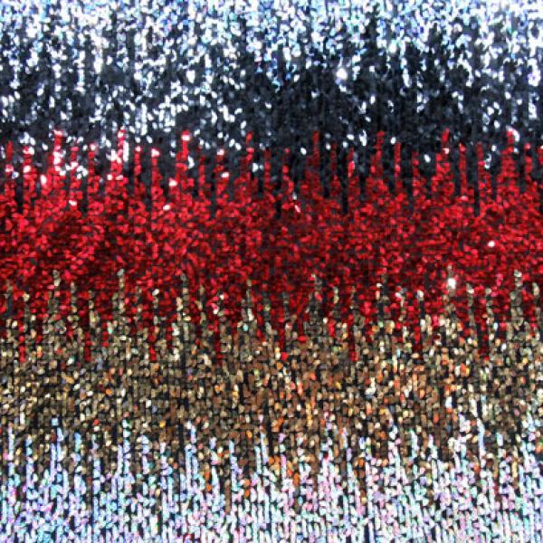 This is a Medium-Weight Holographic Sequins on Stretch Mesh Fabric, With a 2 Way Stretch, Multi-Colored Colored