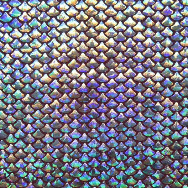 This is a Medium-Weight Holographic Small Mermaid Metallic Foil on Nylon Spandex Fabric, With a 4 Way Stretch, Silver/Wine Colored