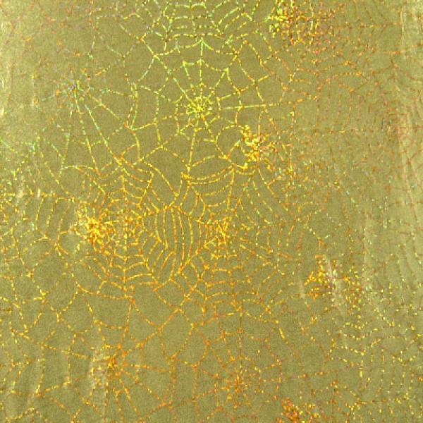 This is a Medium-Weight Holographic Spider Web Metallic Foil on Polyester Spandex Fabric, With a 2 Way Stretch, Gold Colored