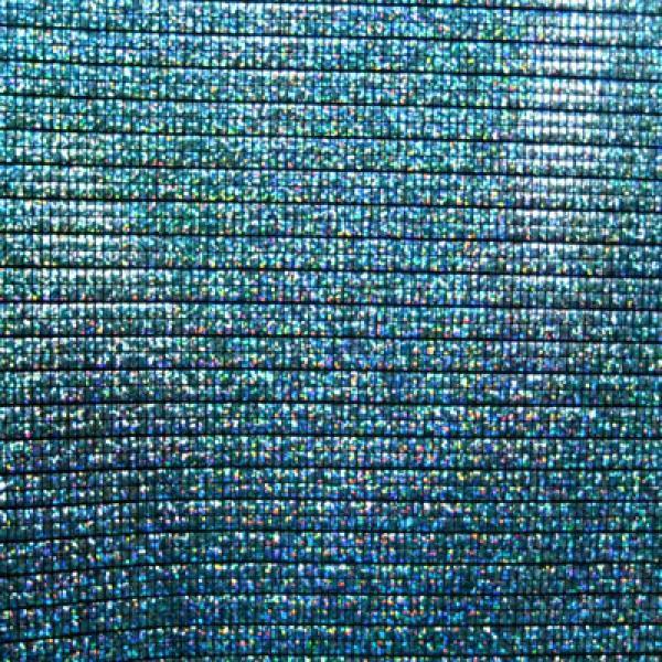 This is a Medium-Weight Holographic Vista Metallic Foil on Nylon Spandex Fabric, With a 4 Way Stretch, Turquoise/Black Colored