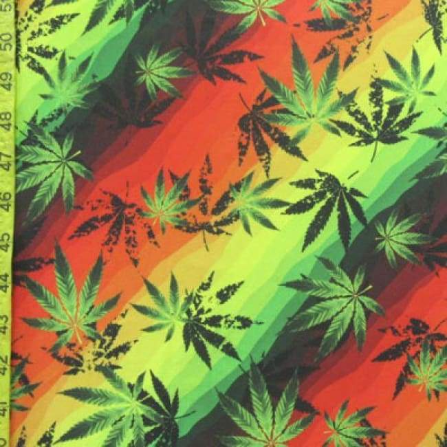Marijuana Print On Polyester Spandex, 4 Way Stretch, Multi-Colored