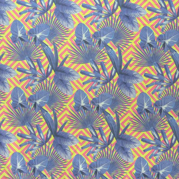 Leaf Print On Spandex, 4 Way Stretch, Purple/Yellow/Orange