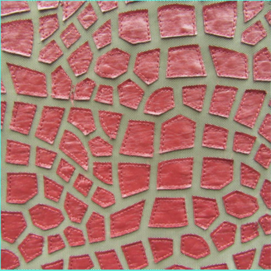 Leopard Pleather Patch On Mesh Fabric, 2 Way Stretch, Red/Nude