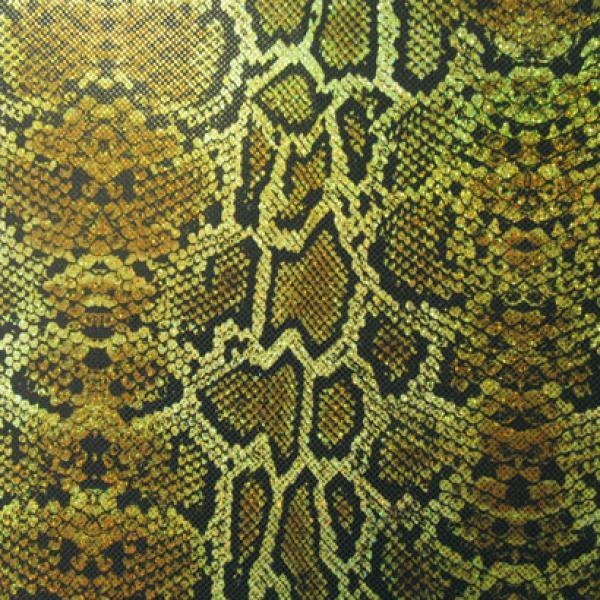 This is a Medium-Weight Metallic Holographic Snake Print Foil on Nylon Spandex Fabric, With a 4 Way Stretch, Black Colored