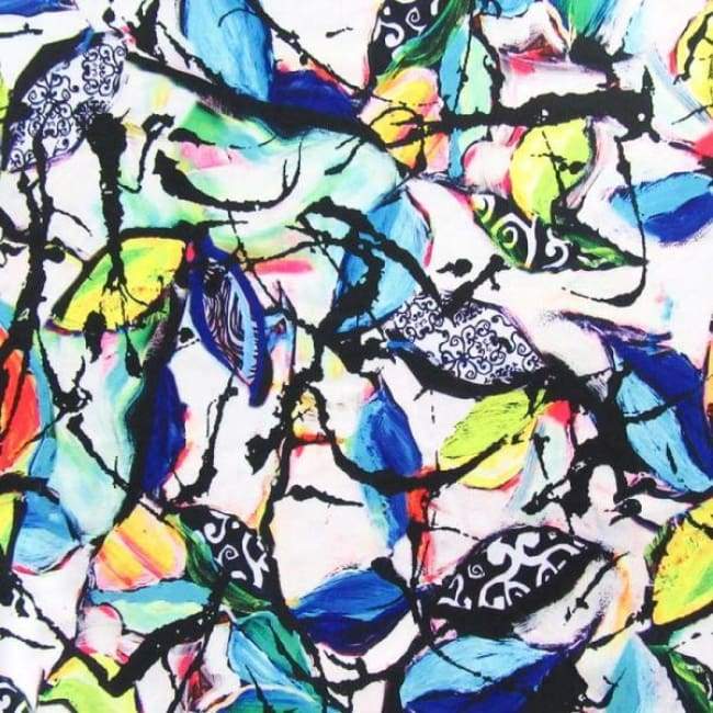 This is a Light-Weight Modern Art Print on Polyester Spandex Fabric, With a 4 Way Stretch, Multi-Colored Colored