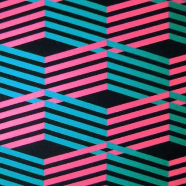 Multi Dimensional Pattern Print On Nylon Spandex, 4 Way Stretch, Turquoise/Black/Coral